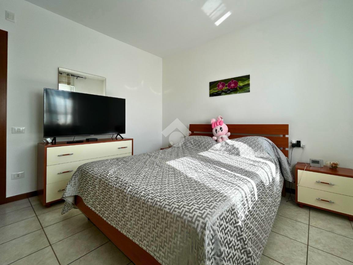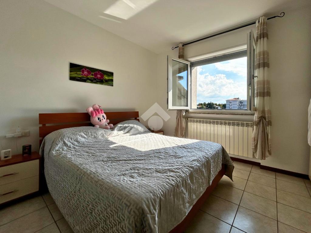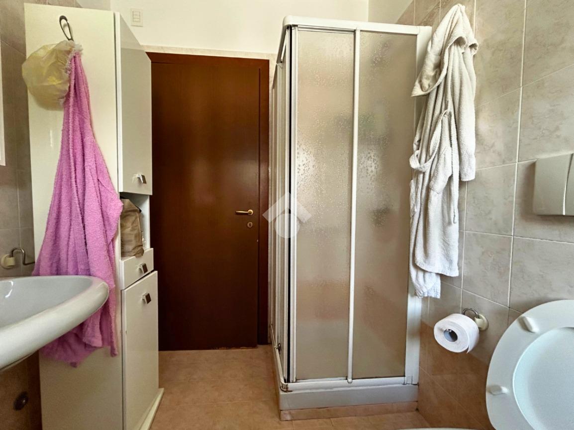 Zona notte: disimpegno che conduce a una camera matrimoniale spaziosa e luminosa e a un bagno finestrato con box doccia moderno e funzionale.