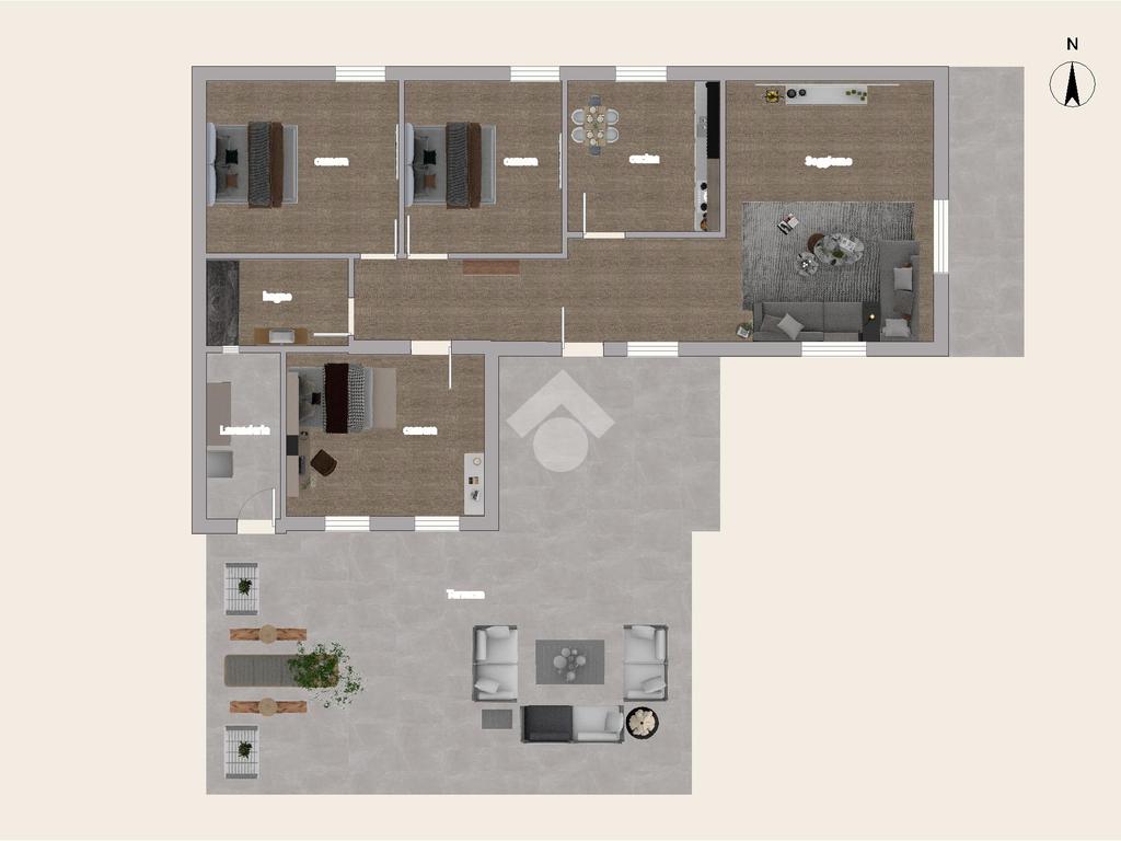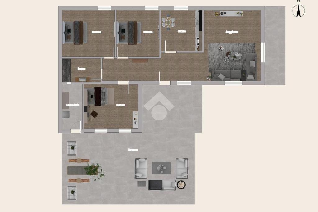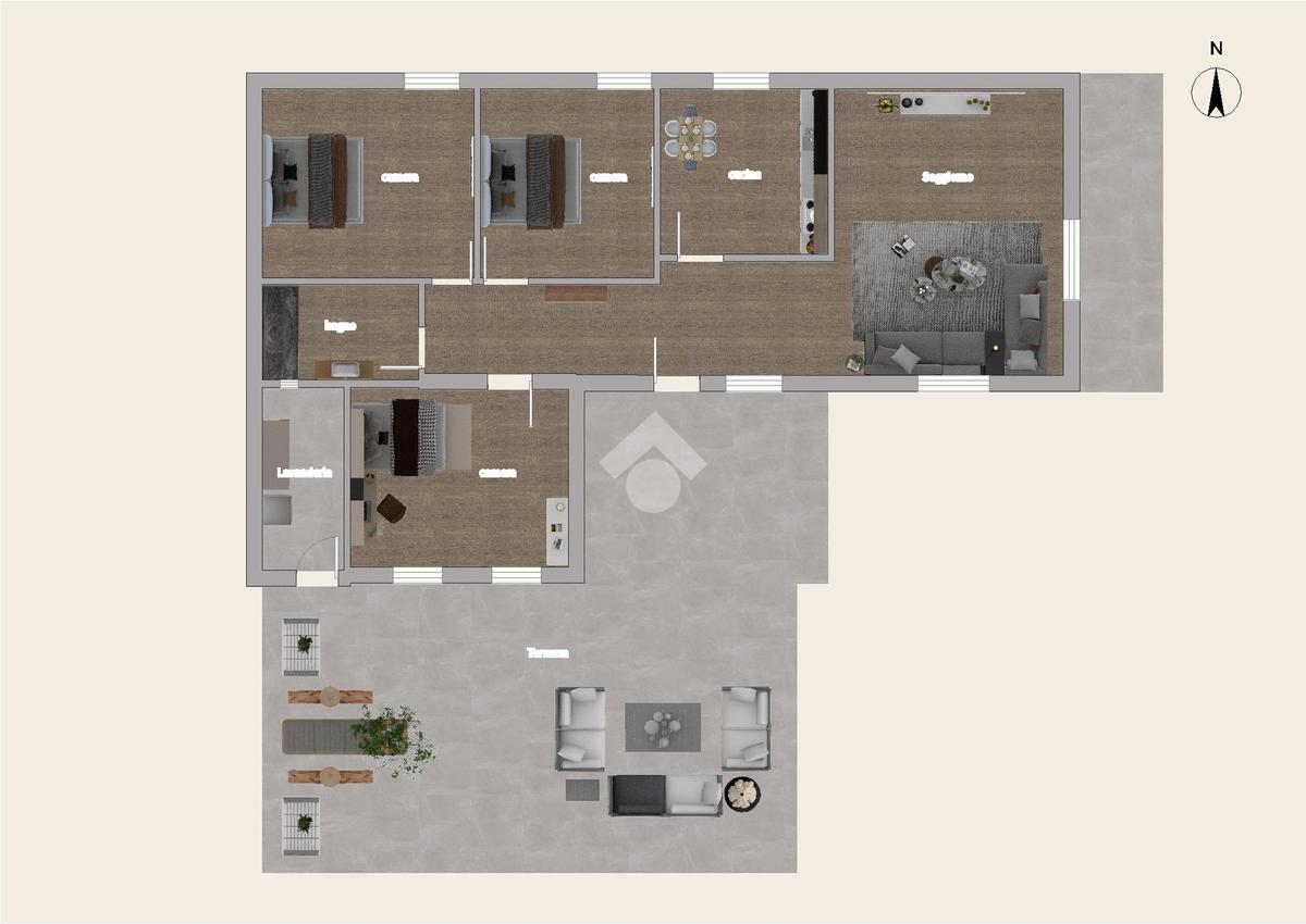 La zona notte, ben distinta, ospita tre camere da letto matrimoniali, un bagno finestrato con moderna doccia, e un ampio terrazzo vivibile accessibile sia dall’ingresso che da una delle camere, ideale per cene all’aperto, relax o momenti in compagnia.