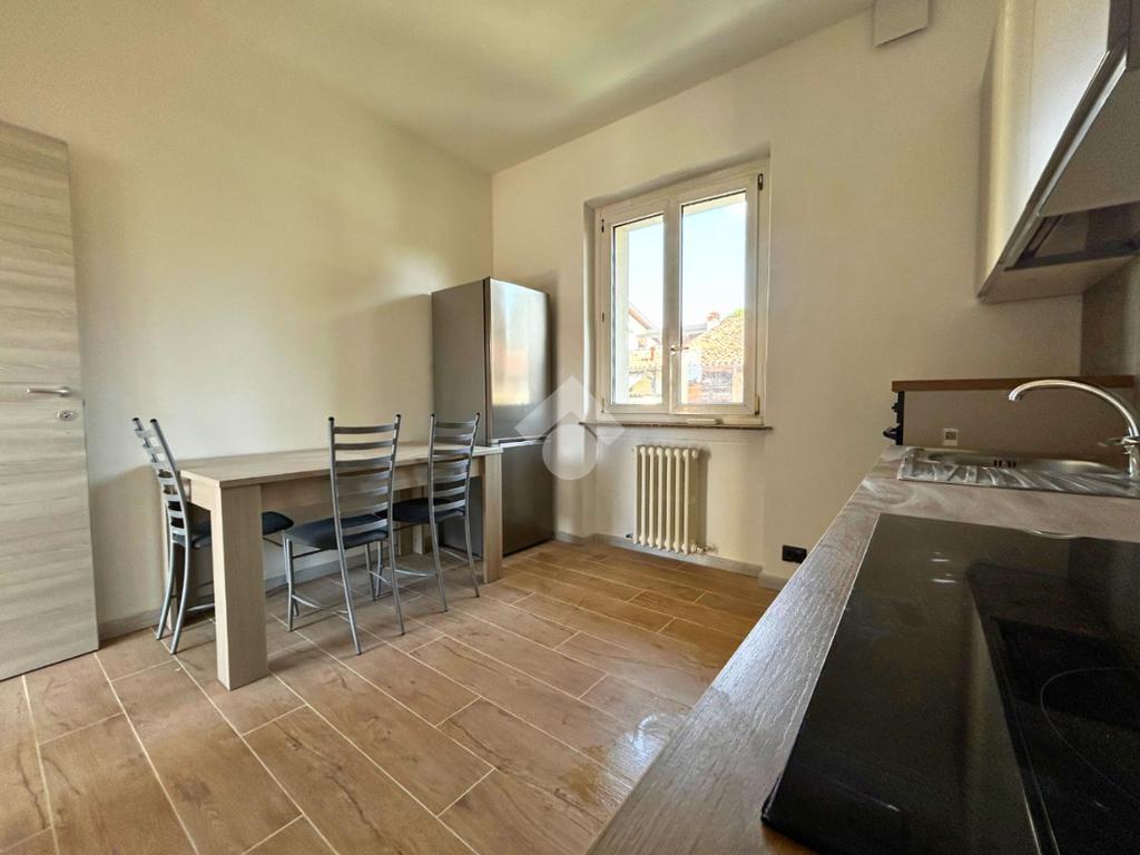 L’abitazione si trova al primo piano e si apre su un comodo disimpegno d’ingresso, che accompagna verso un luminoso soggiorno con accesso diretto al balcone e a una cucina abitabile separata.