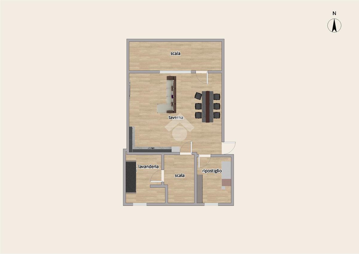 Attraverso una scala interna si accede al piano interrato, dove trovano spazio una taverna ideale come ambiente conviviale o sala hobby, una lavanderia completa di doccia, un disimpegno e un ulteriore locale ripostiglio.