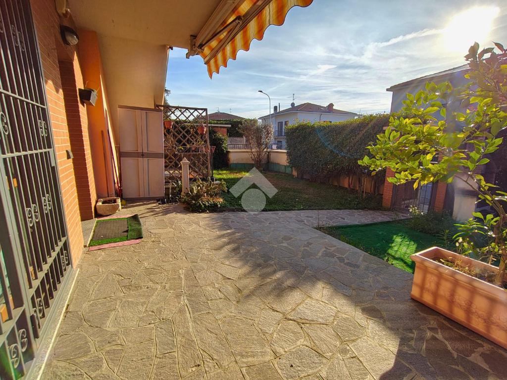 In una delle aree più tranquille e residenziali di Dalmine, precisamente in zona Sforzatica, proponiamo raffinato trilocale al piano terra con ingresso indipendente e doppi giardini privati, situato in elegante palazzina edificata nel 2004.