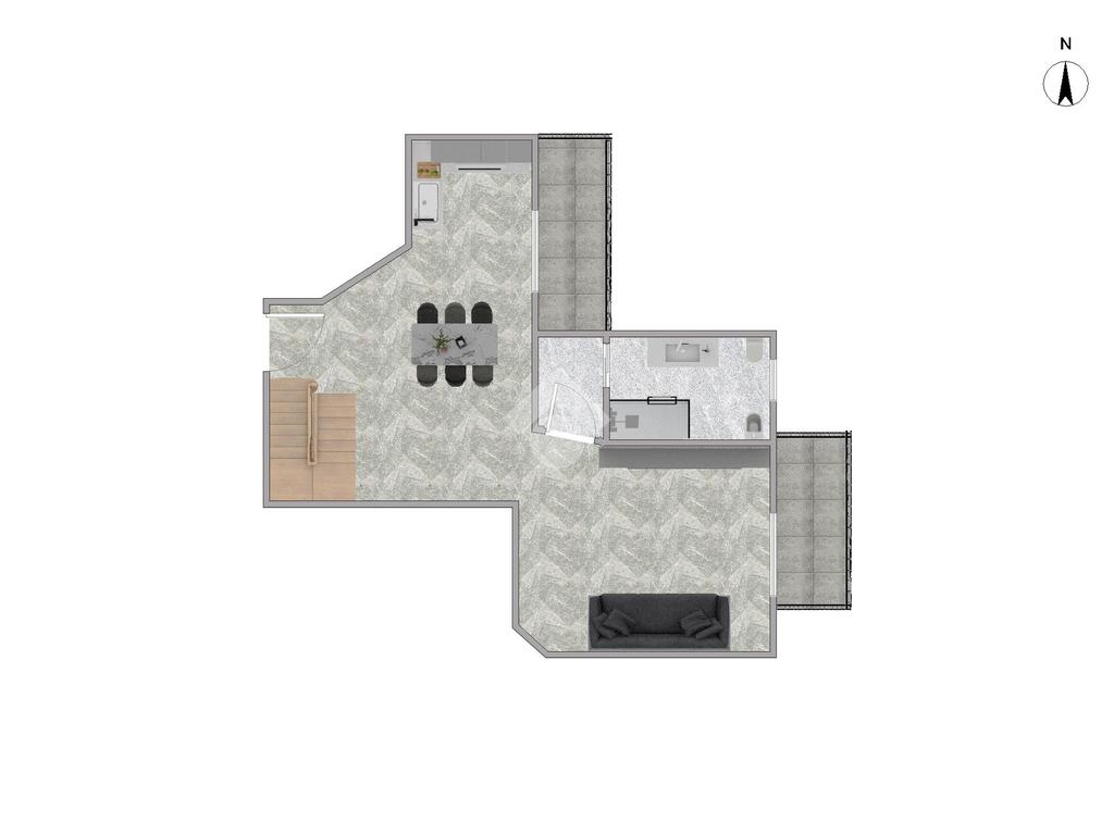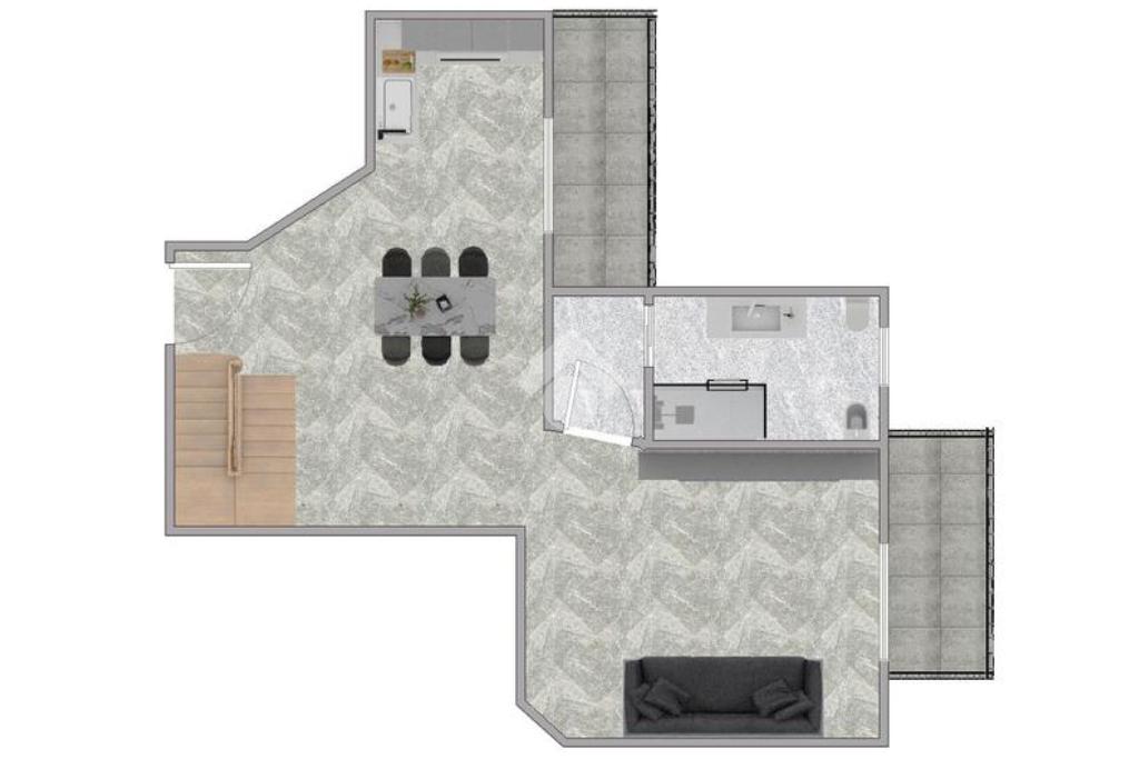 Il piano superiore, collegato tramite scala interna, ospita una camera da letto matrimoniale con accesso al terrazzo a pozzo e un secondo bagno finestrato.