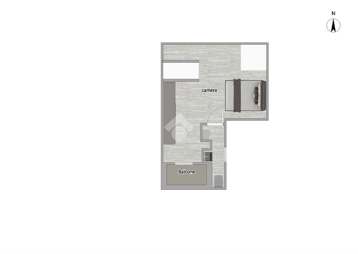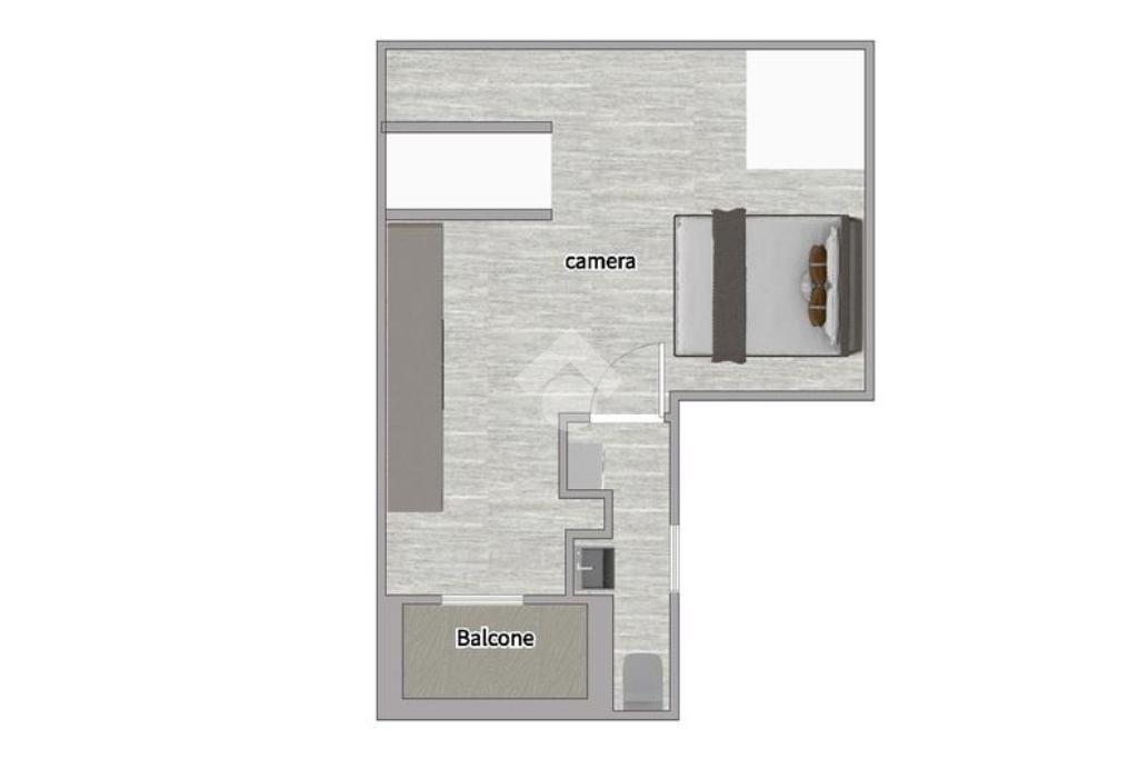 L’ingresso conduce a un’ampia zona living, funzionalmente suddivisa in area soggiorno e cucina a vista, entrambe con accesso ai due balconi. Completa il piano un bagno dotato di vasca e doccia.