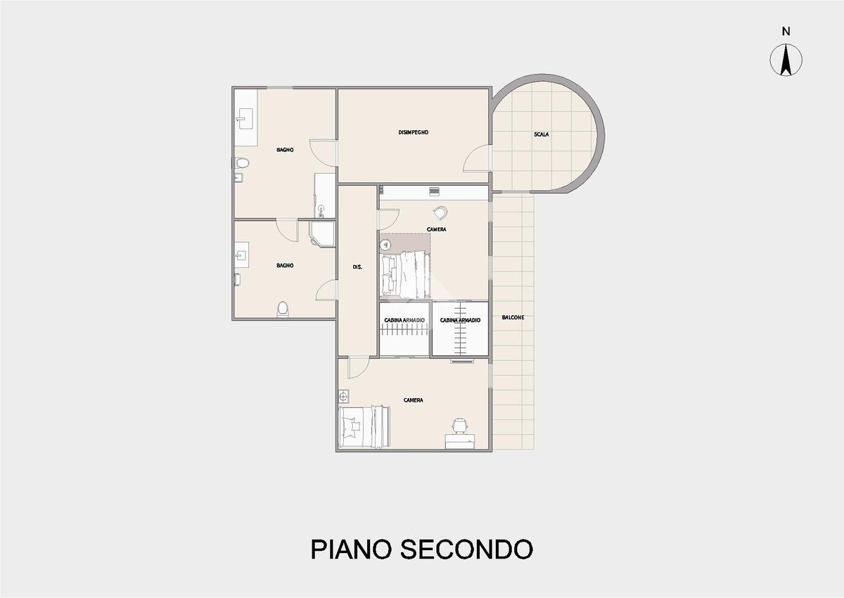 Il secondo e ultimo piano ospita una seconda zona notte indipendente, servita da disimpegno, due bagni (uno finestrato e uno cieco, entrambi con box doccia) e due camere da letto, entrambe dotate di cabina armadio e accesso al balcone.