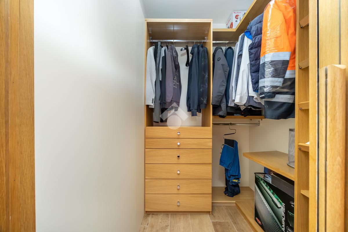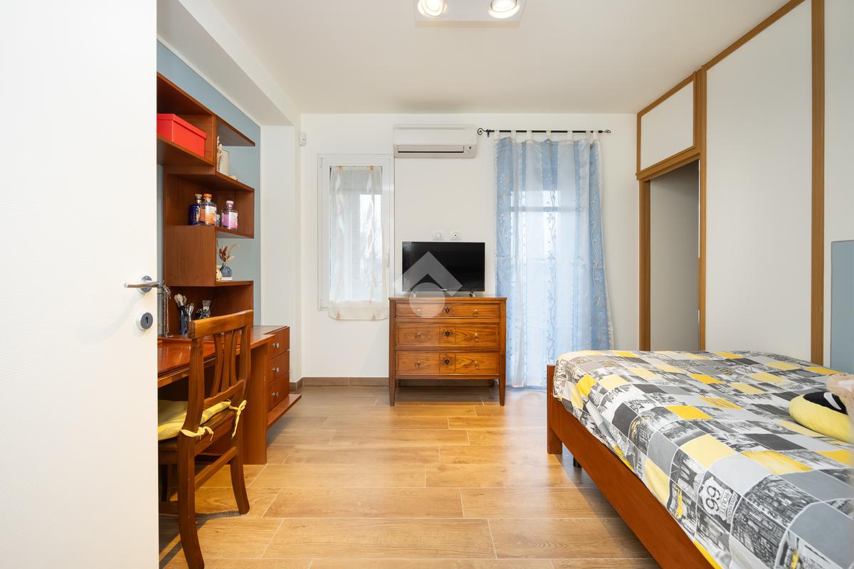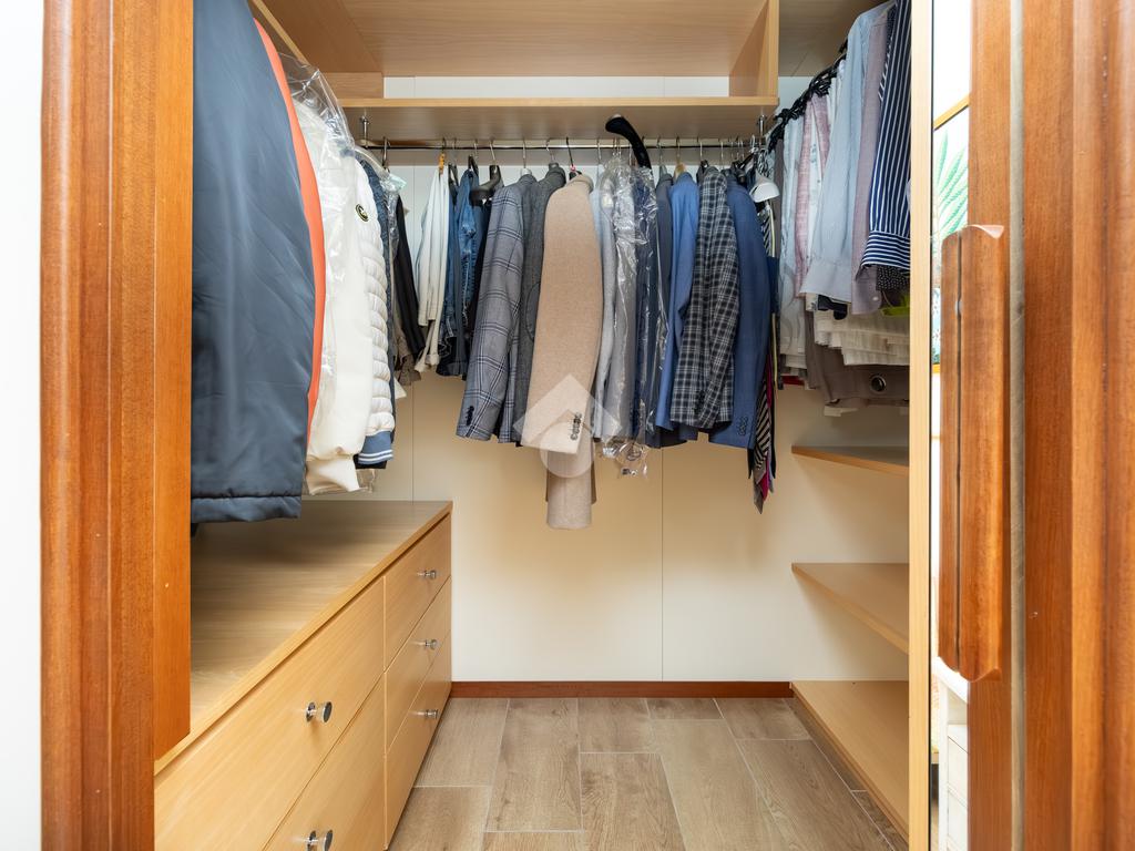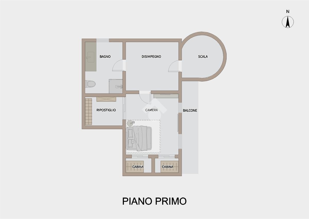 Al primo piano si sviluppa la prima zona notte, composta da disimpegno ampio, bagno finestrato con box doccia, camera matrimoniale con cabina armadio dedicata, ripostiglio e balcone vivibile.