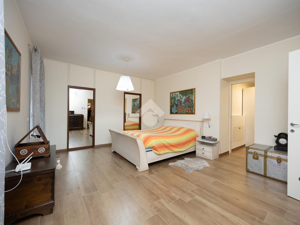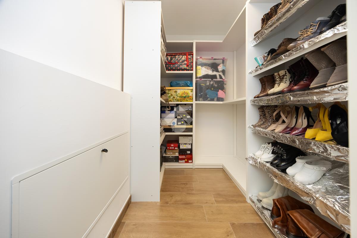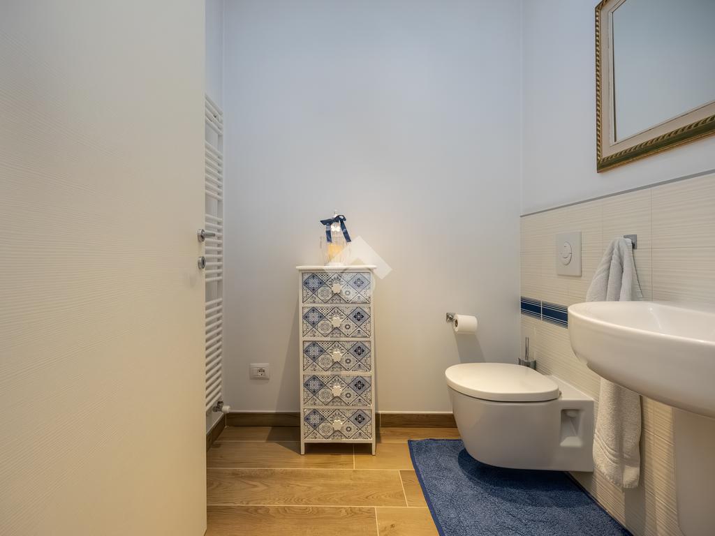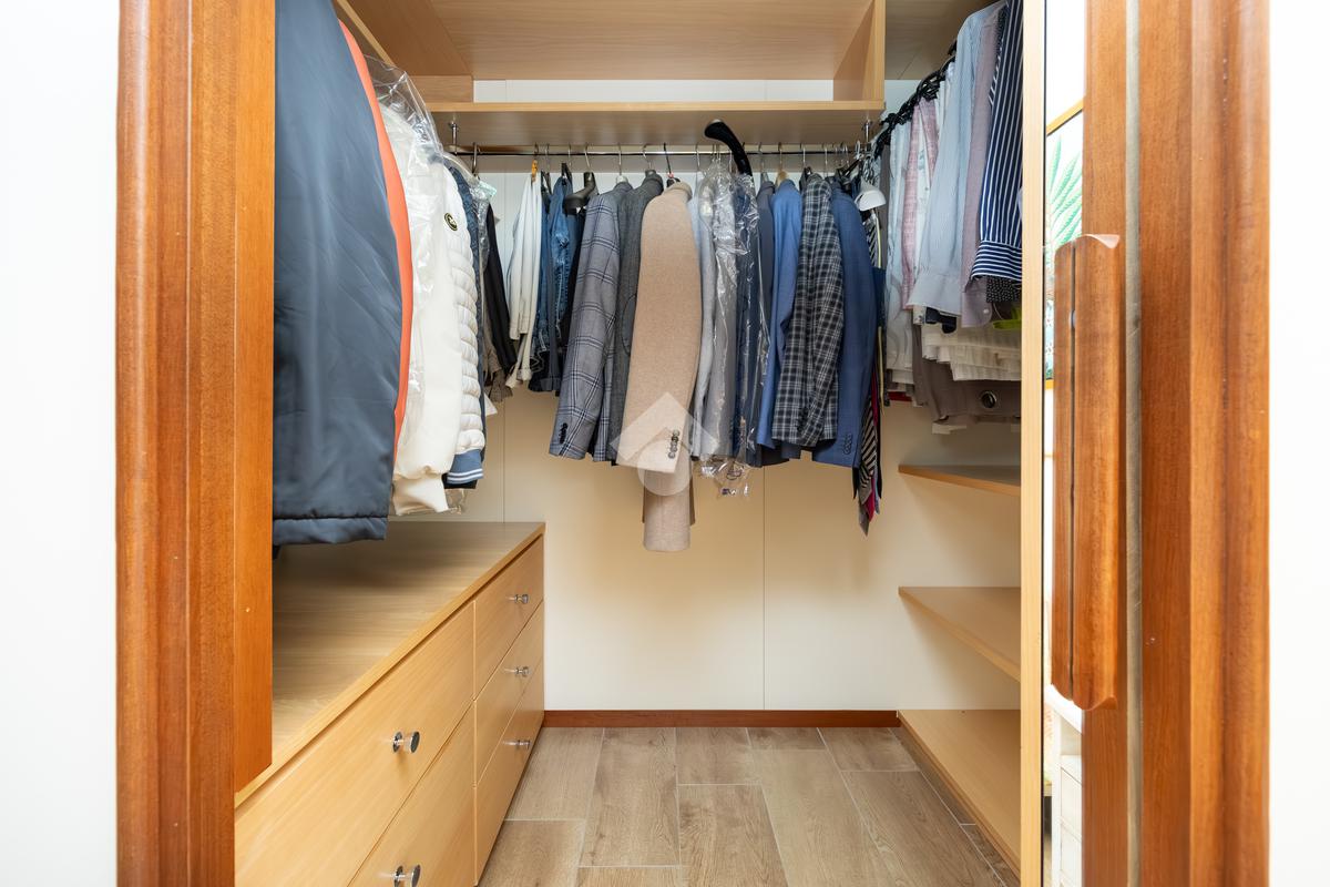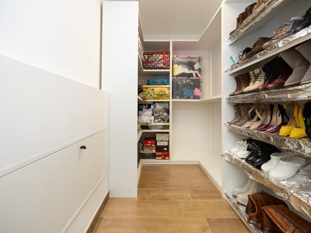 Al primo piano si sviluppa la prima zona notte, composta da disimpegno ampio, bagno finestrato con box doccia, camera matrimoniale con cabina armadio dedicata, ripostiglio e balcone vivibile.
