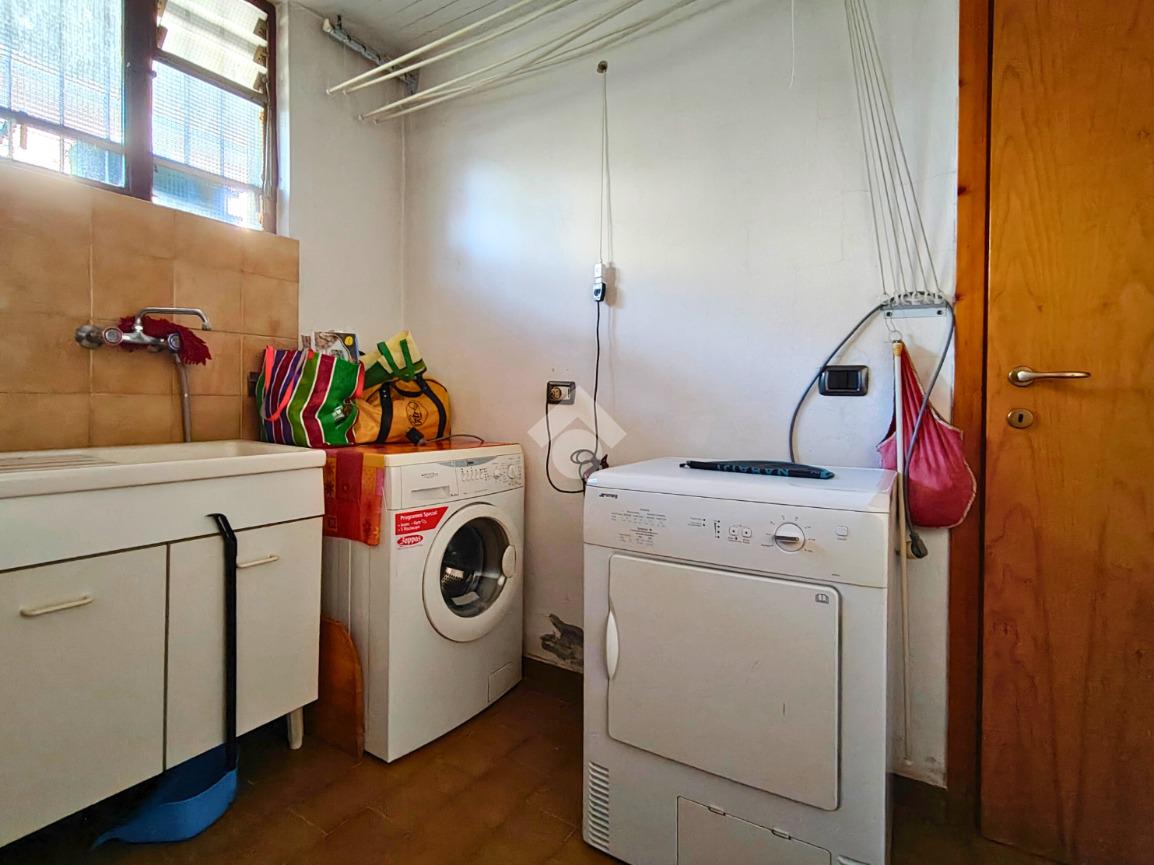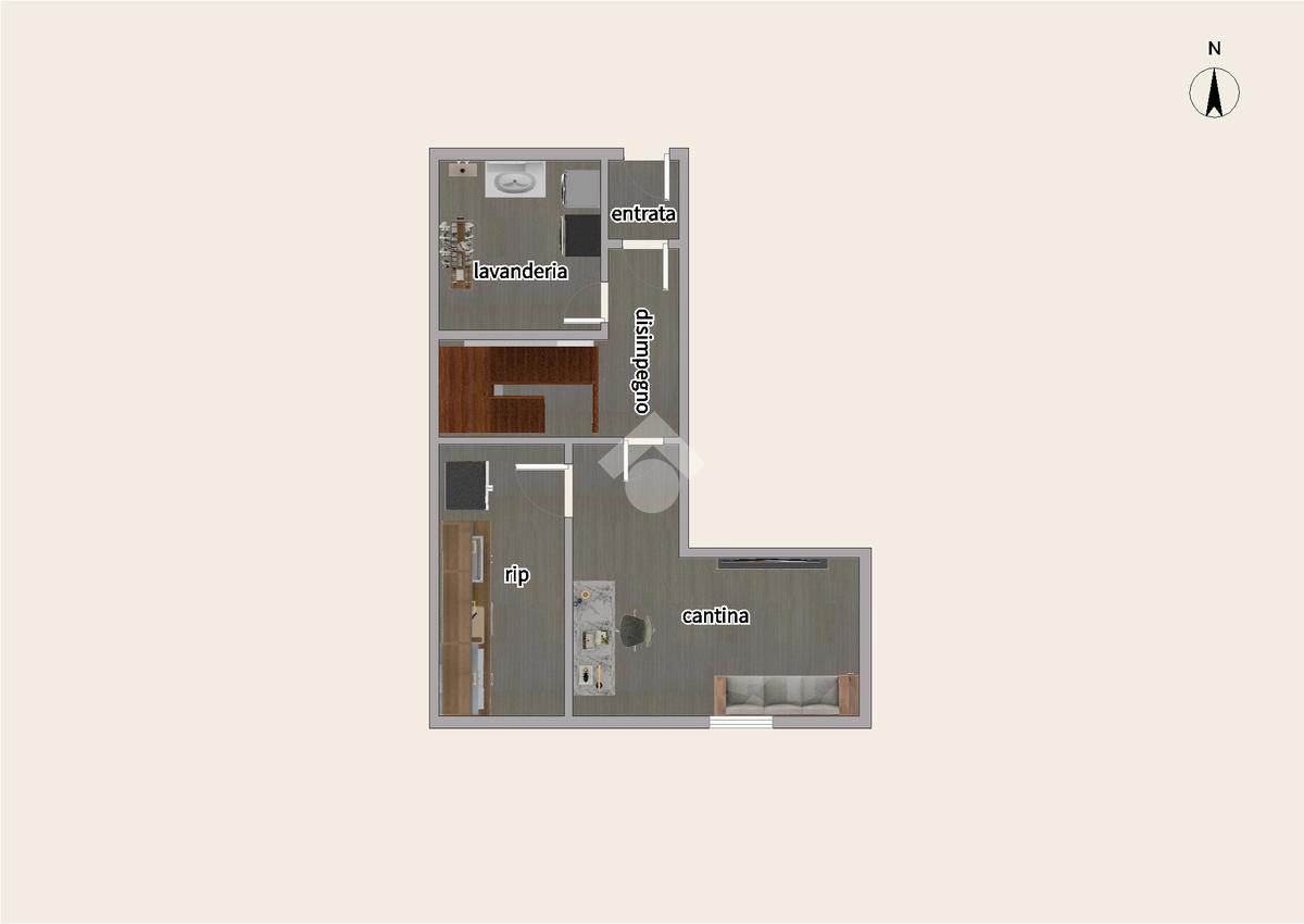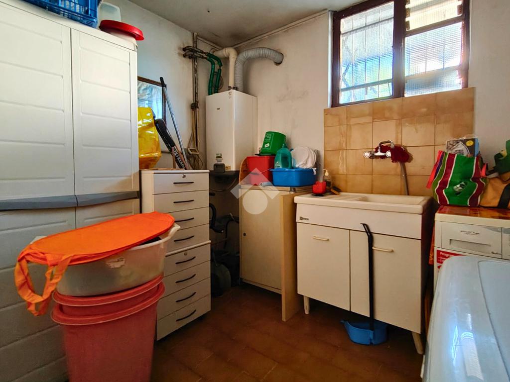 L’accesso avviene da un’area privata frontale, che comprende sia l’ingresso pedonale sia il corsello carrale che conduce al box singolo di 18 mq. Dal portoncino principale si entra al piano terra, dove si sviluppano una taverna accogliente, un ripostiglio funzionale e una lavanderia spaziosa e finestrata, completa di locale tecnico con caldaia a condensazione.