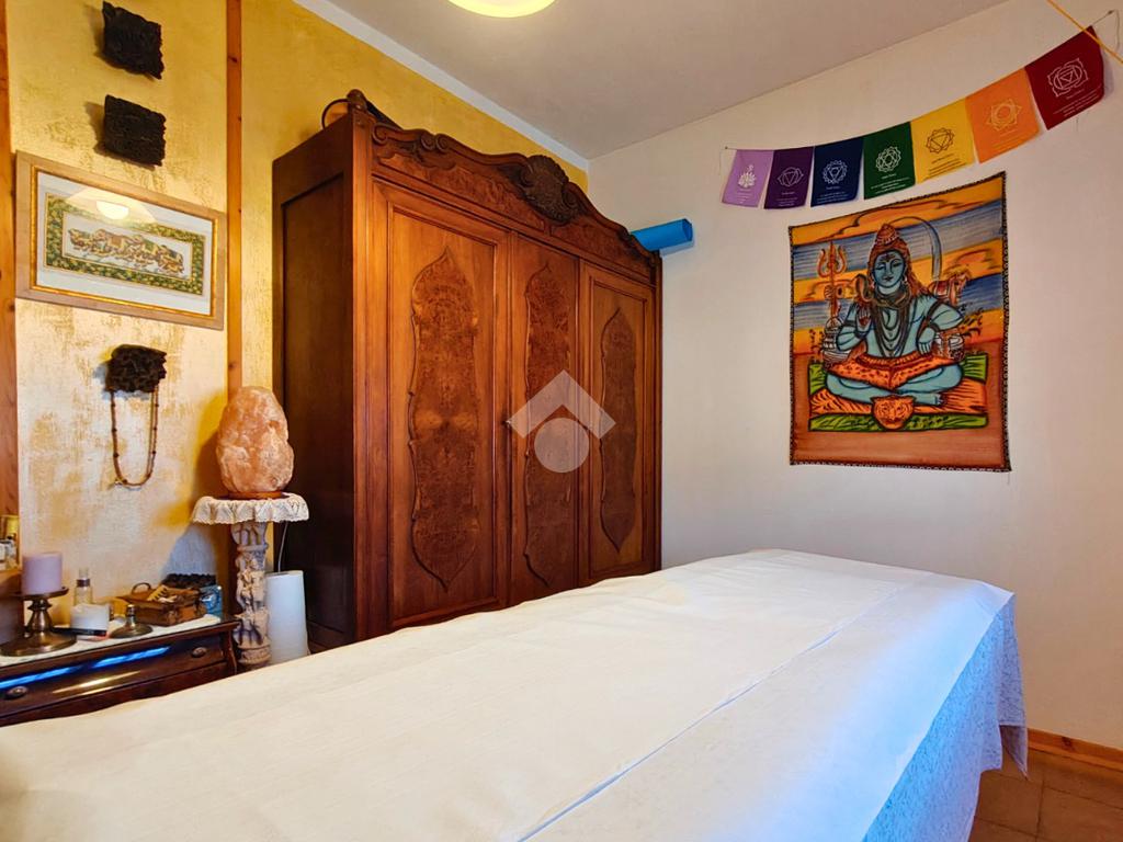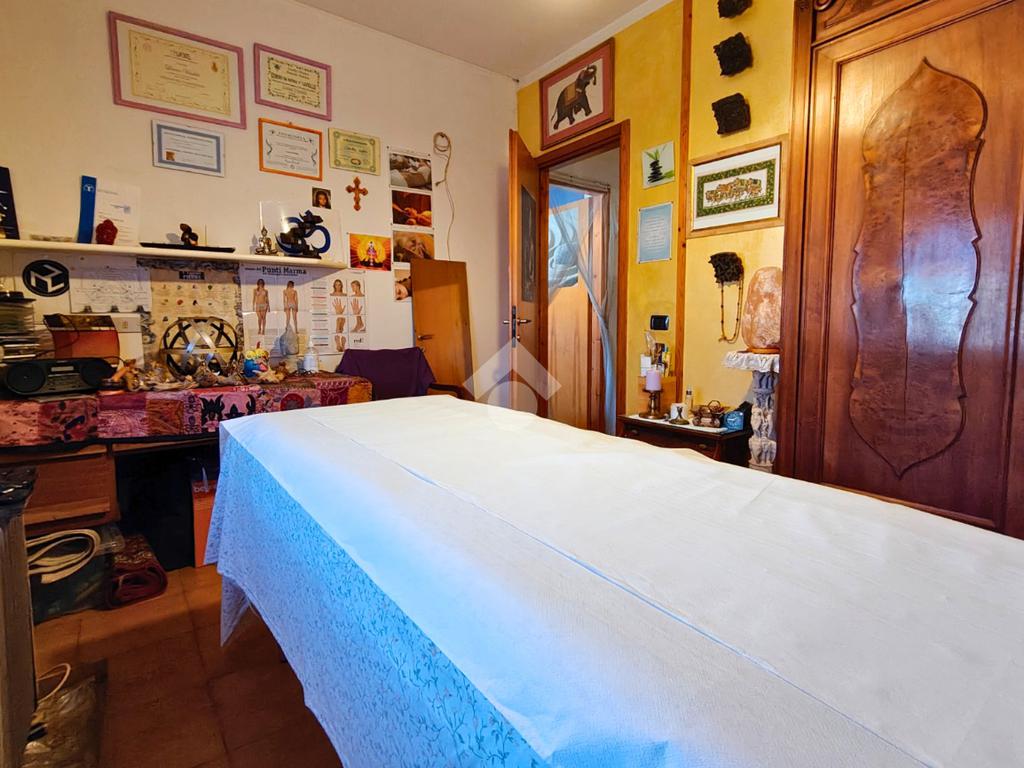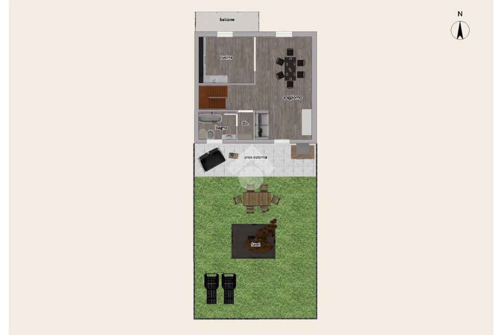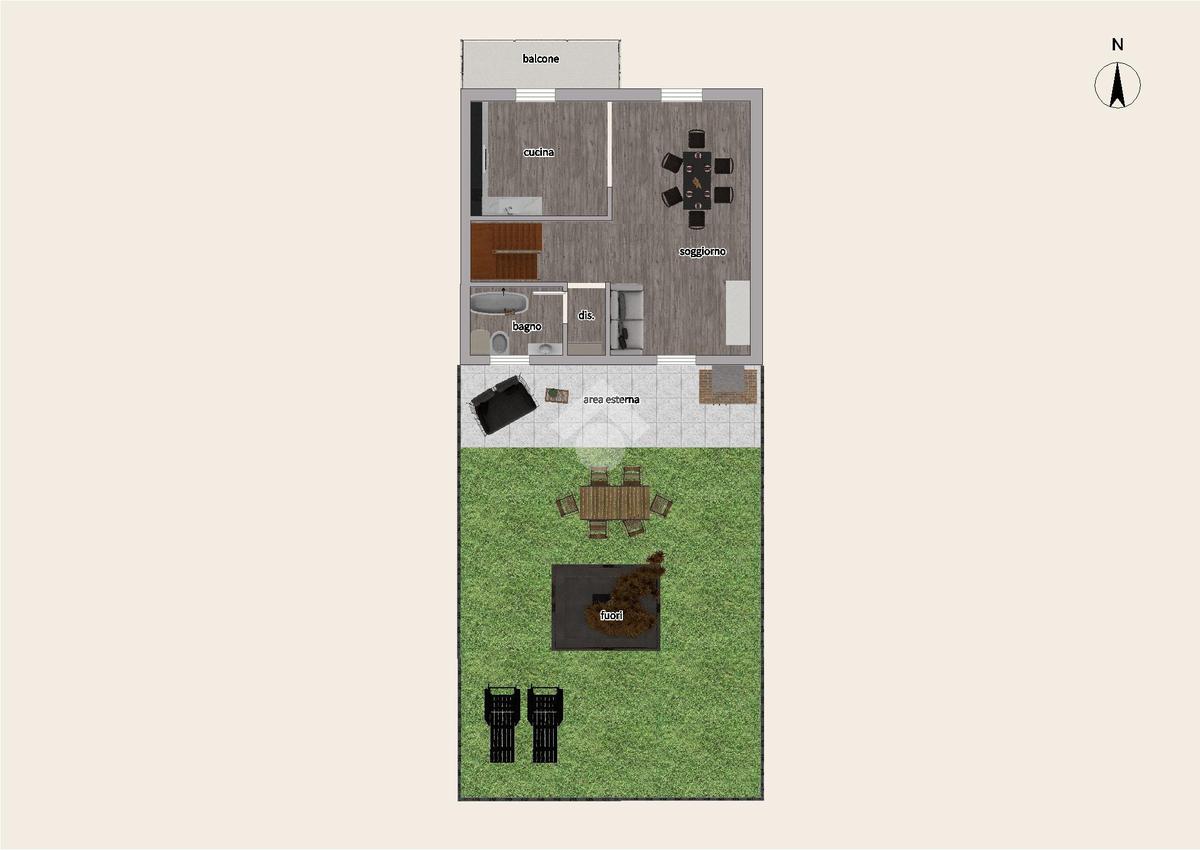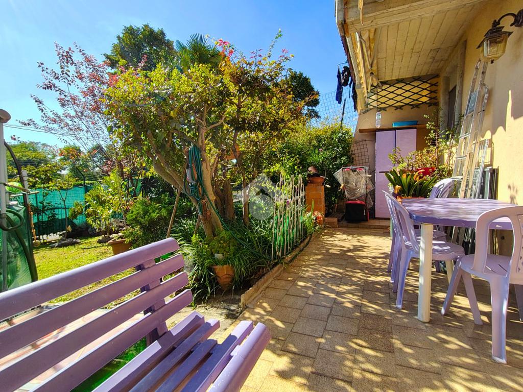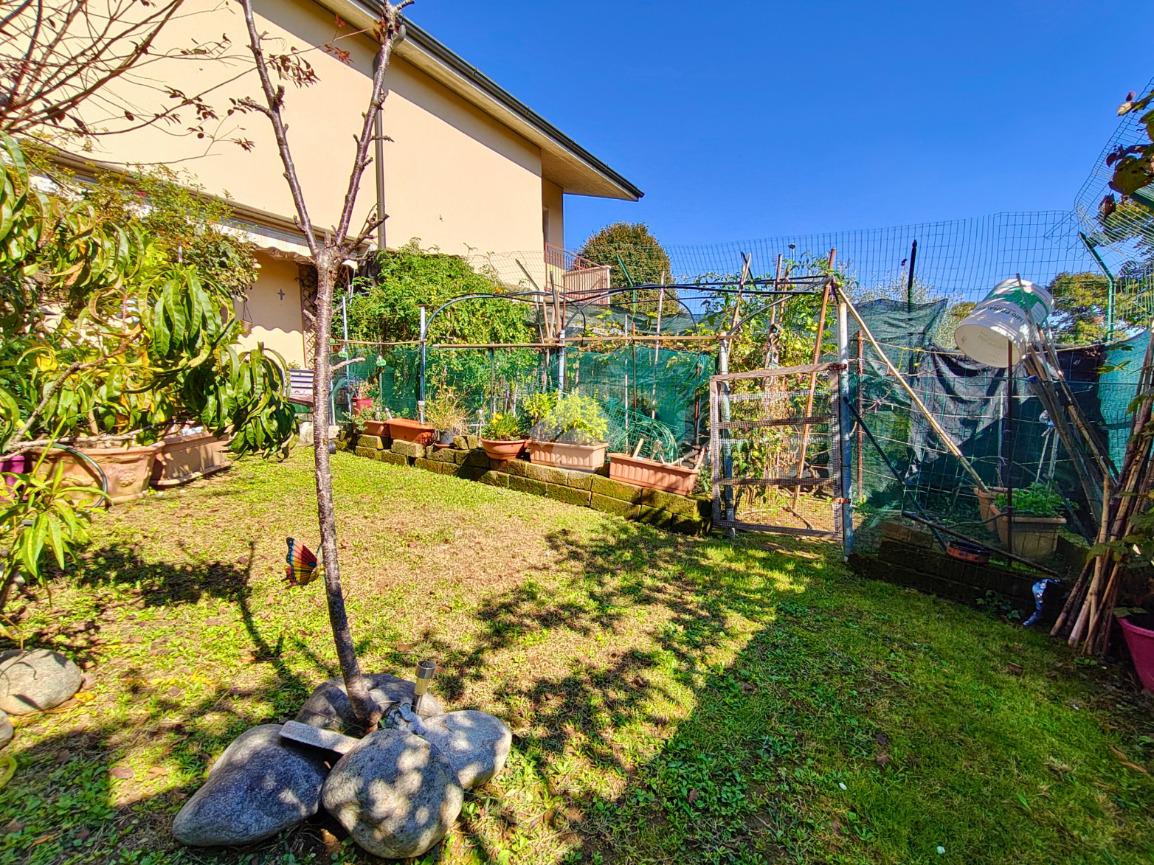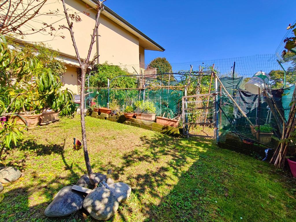 Salendo al primo piano si apre la zona giorno, luminosa e ben organizzata. Qui troviamo un bagno finestrato con box doccia, una cucina a vista con accesso diretto al balcone e un ampio soggiorno, dotato di grande portafinestra che conduce al giardino privato di circa 60 mq. Questo spazio verde, riservato e curato, è ideale per pranzi all’aperto, momenti di relax o per ospitare una seconda entrata pedonale indipendente.