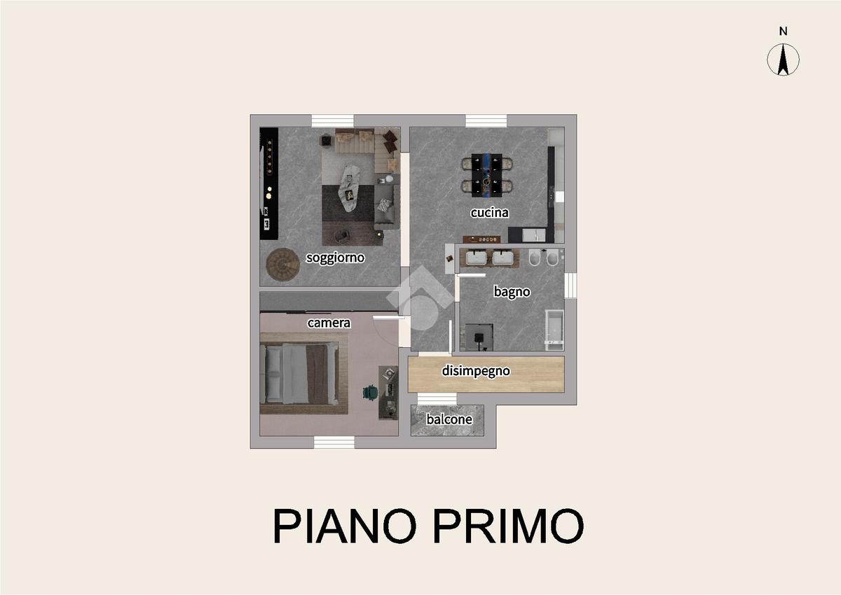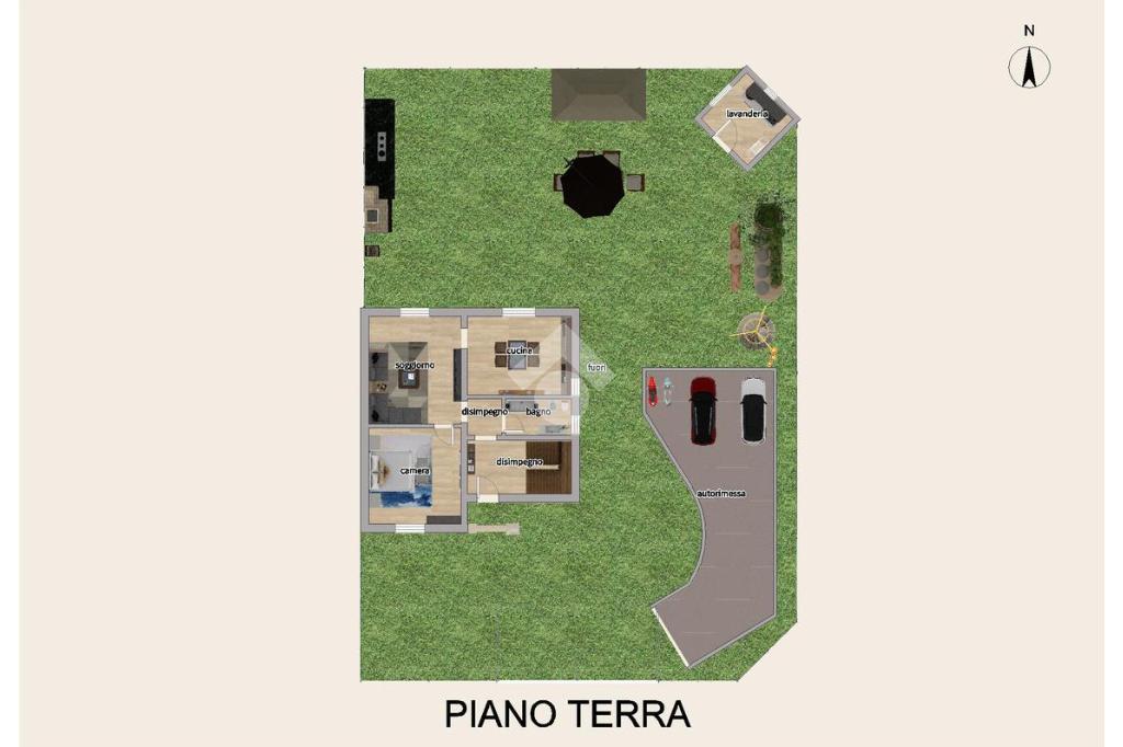 Al piano rialzato l’ingresso conduce a un accogliente disimpegno, dalla quale si accede a un soggiorno ampio e luminoso, ideale come living principale, e a una cucina abitabile con angolo cottura e affaccio diretto sul giardino, perfetta per momenti conviviali. Il piano comprende inoltre una camera matrimoniale di generose dimensioni e un bagno finestrato con vasca.