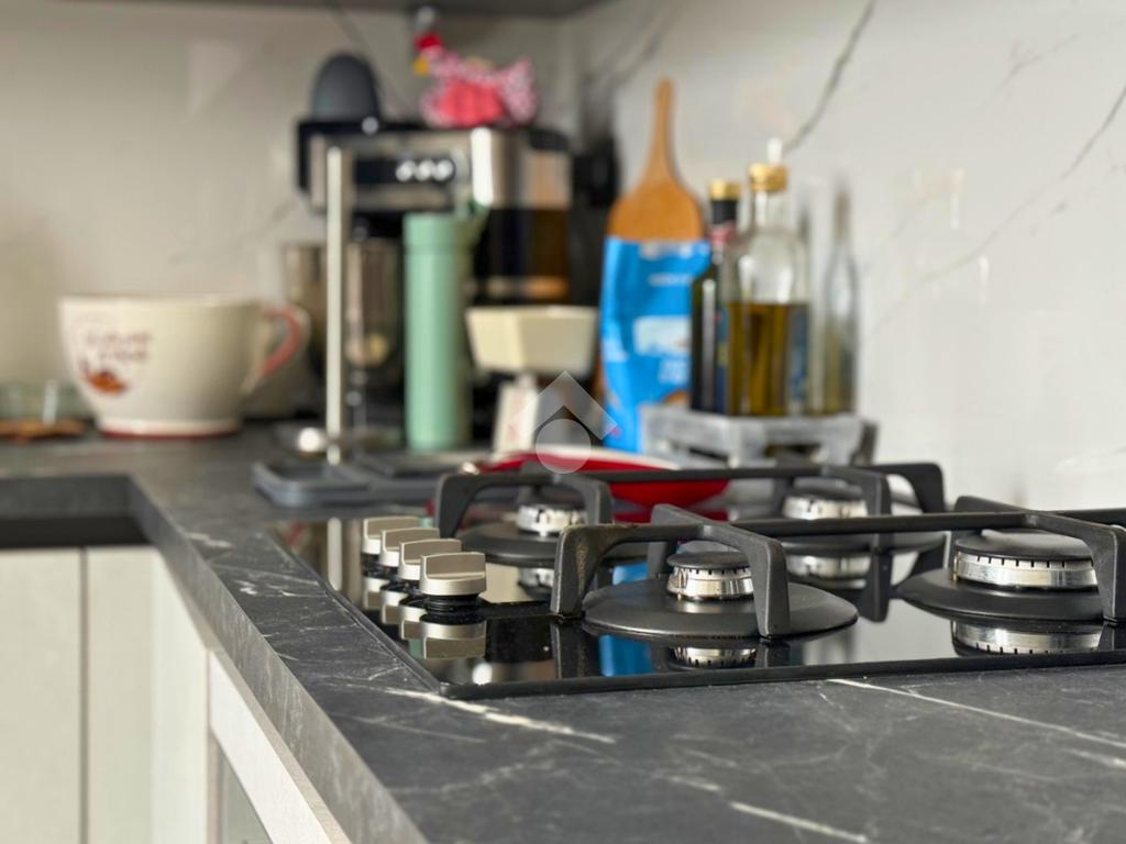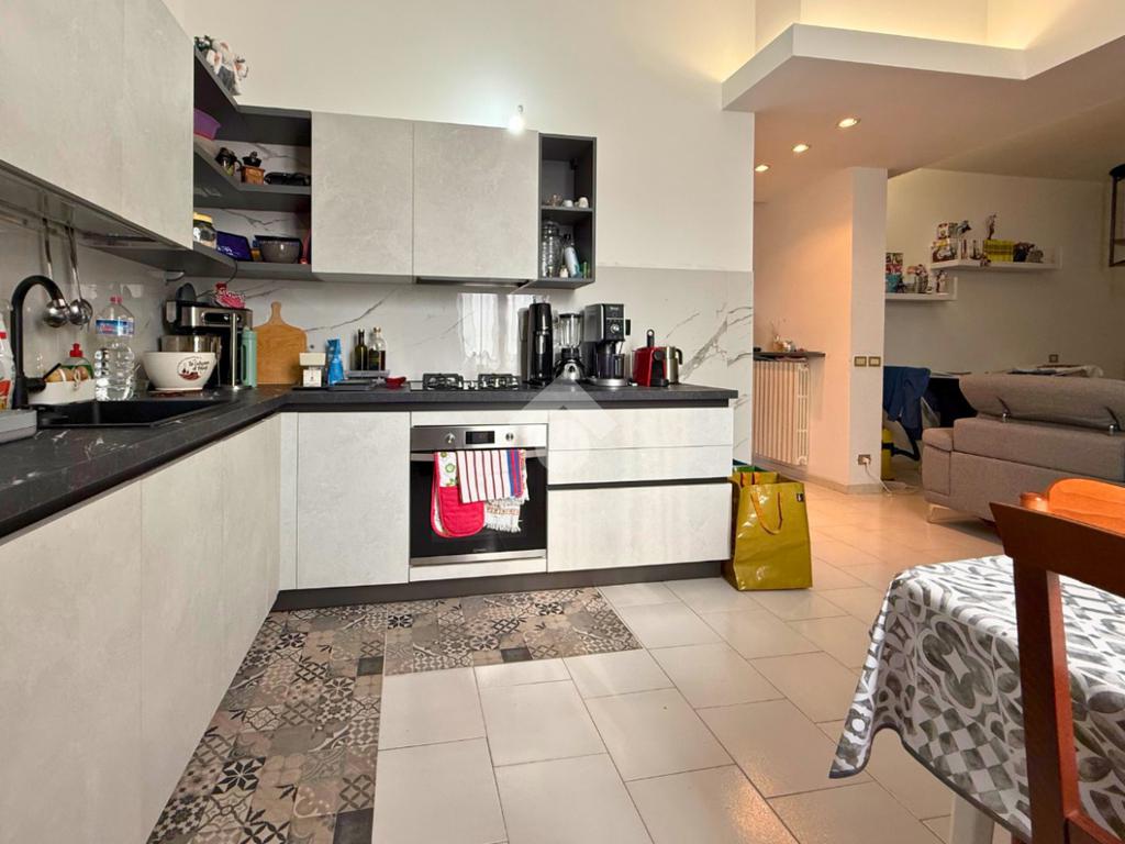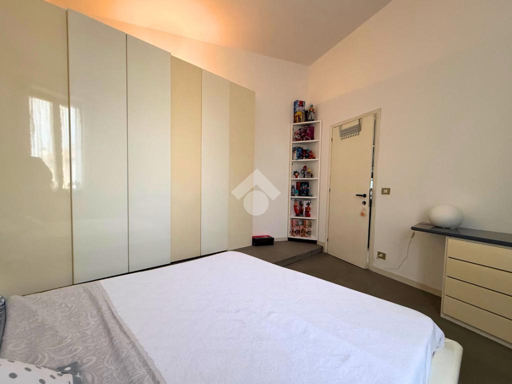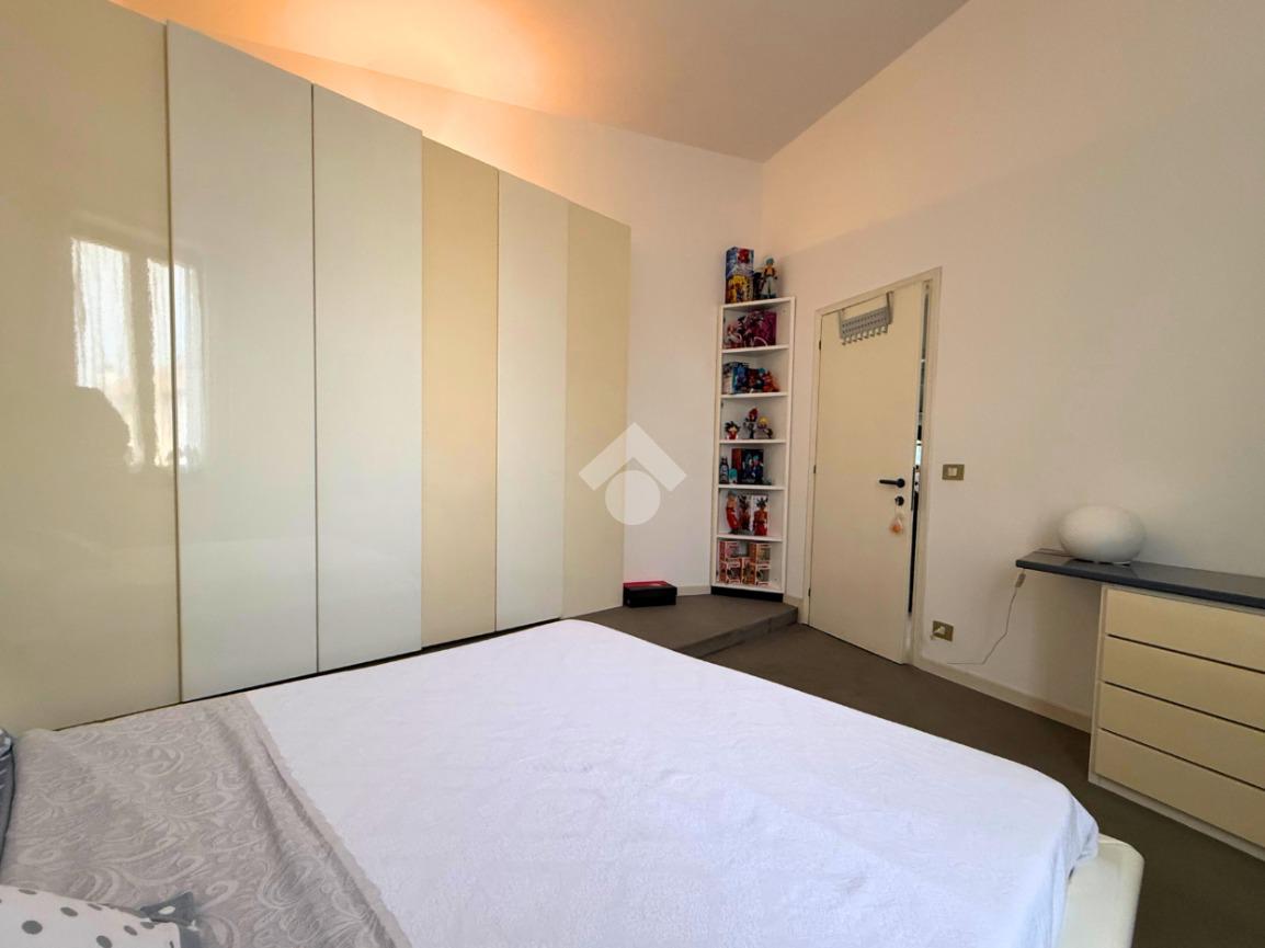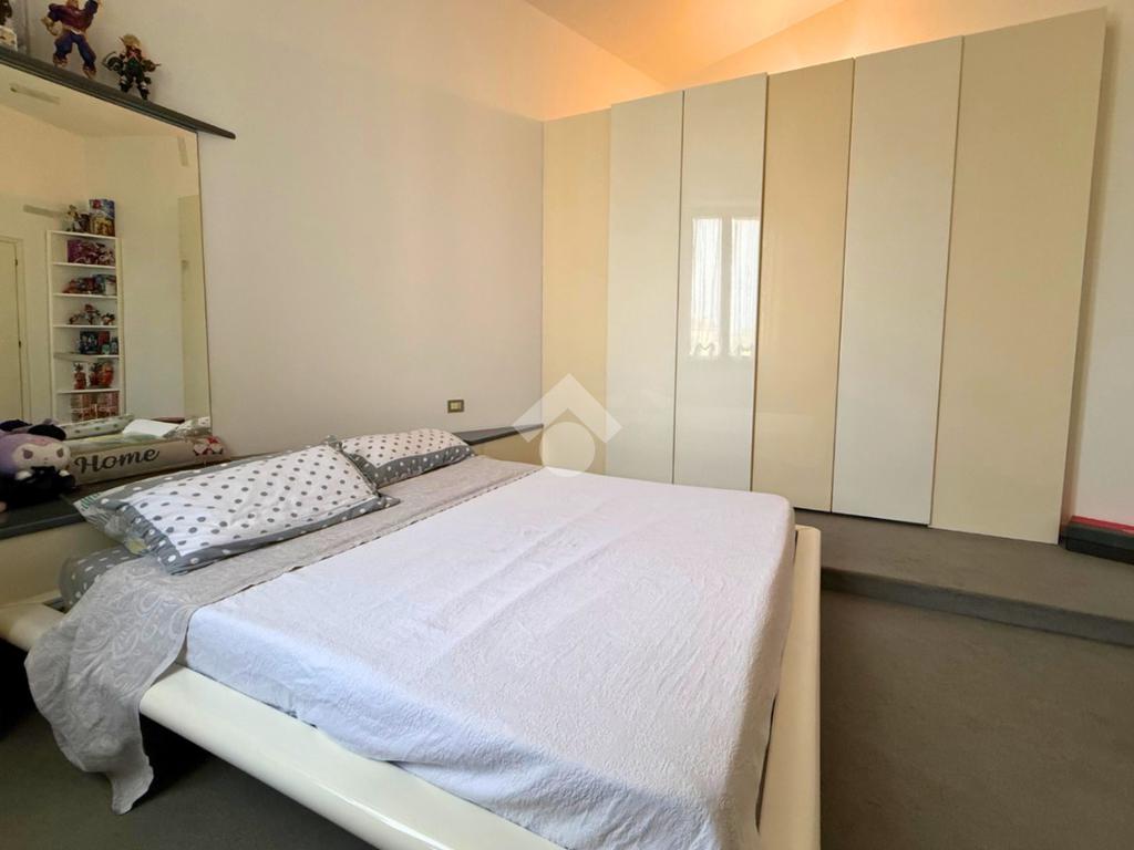 Il primo piano ospita una seconda camera matrimoniale, luminosa e silenziosa, e una sala da bagno padronale con doppio lavabo, vasca e box doccia, creando un ambiente confortevole e di grande impatto estetico. Sullo stesso livello si sviluppa una cucina open space con vista sul soggiorno sottostante e un ampio living, mentre dal soggiorno una scala a chiocciola conduce a un soppalco, ideale come studio, affiancato da un locale caldaia.