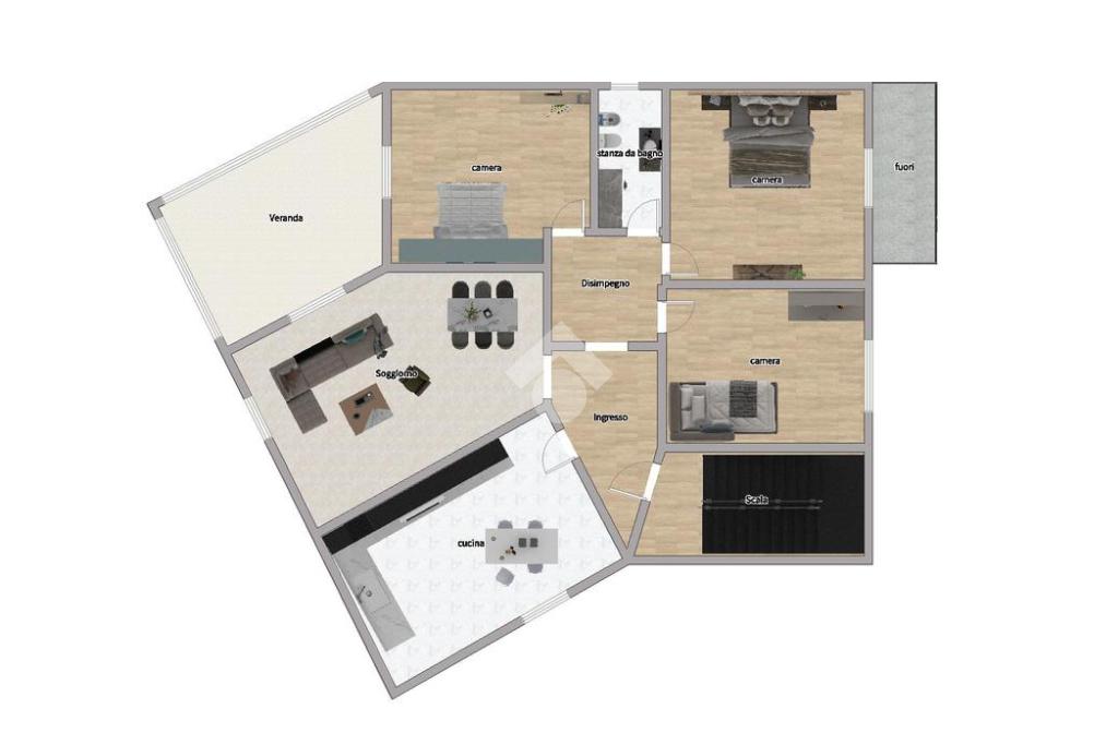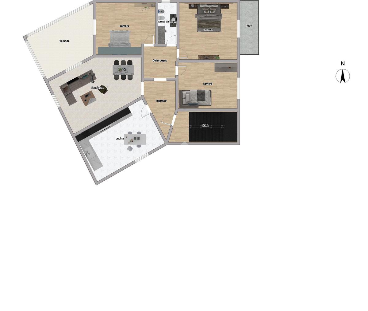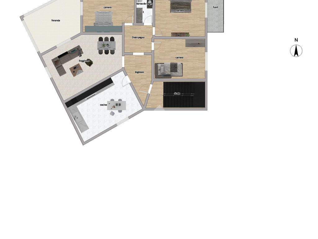 tre camere da letto (matrimoniale con balcone, doppia con accesso alla veranda e singola)